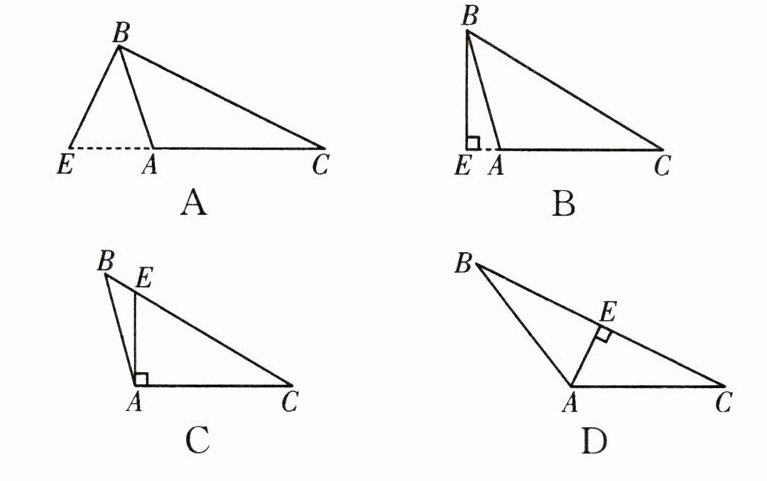(1)试作出△ABC的三条高。从图中可以看出,钝角三角形有______条高在三角形的外部,______条高在三角形的内部;