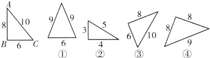 2. 如图,下列三角形中,与△ABC全等的是 ( )