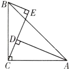 5. 如图,在Rt△ABC中,∠ABC = 90°,点D在BC的延长线上,且BD = AB。过点B作BE⊥AC,与BD的垂线DE交于点E。