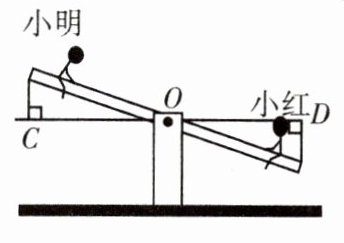 3.如图,小明与小红玩跷跷板游戏,如果跷跷板的支点O(即跷跷板的中点)至地面的距离是50cm,当小红从水平位置CD下降30cm时,小明离地面的高度是______cm。