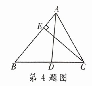4. 如图,在△ABC中,AD平分∠BAC交BC于点D,CE⊥AB于点E。若∠B = 50°,∠ACE = 20°,则∠ADC的度数是________。