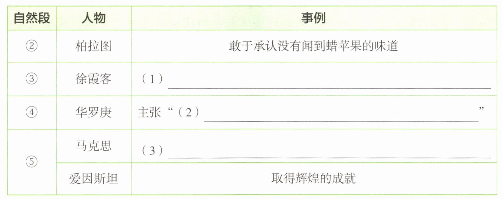 2. 为了论证每个分论点,作者分别列举了哪些人的事例?请完成下面的表格。(3分)