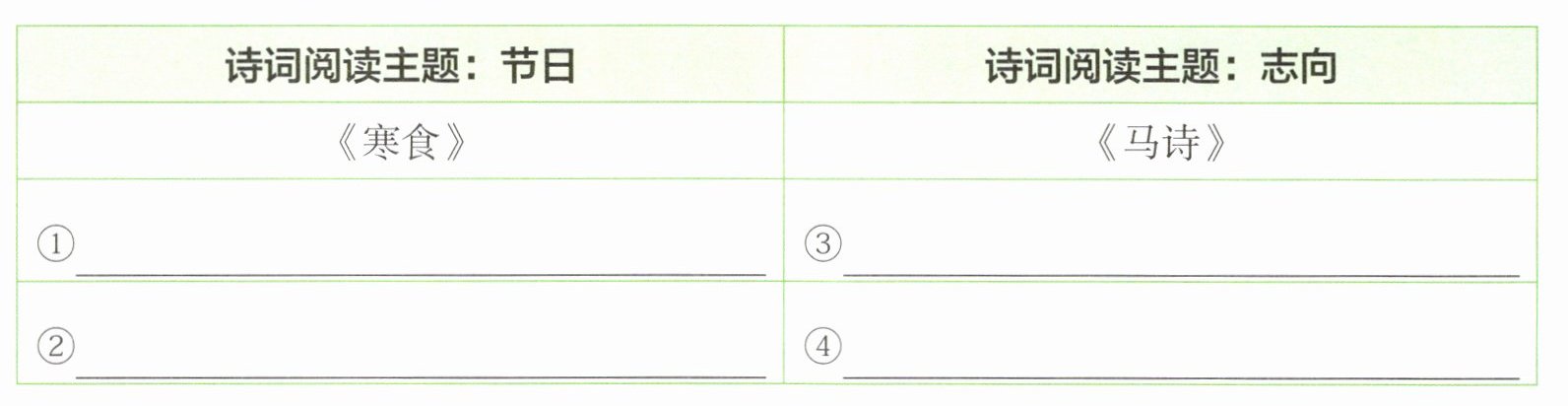 我们爱古诗,古诗早已融入我们的生活之中。寒食节到来,节日期间不能生火做饭,便是“__________________________,__________________________”;中秋节的夜晚望月思家,便是“__________________________,__________________________”