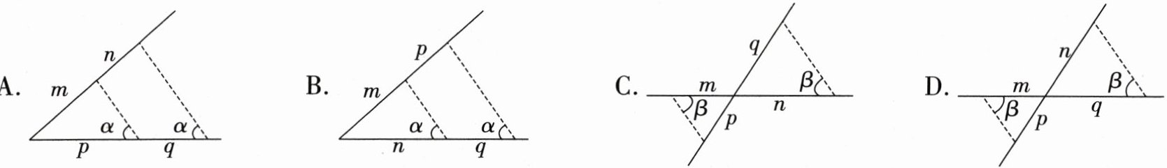 8. 已知线段m,n,P,q,则下列图形中线段的数量关系能得到mn=pq的是 ( )