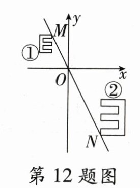 12. 如图,将视力表中的两个“E”放在平面直角坐标系中,两个“E"字是位似图形,位似中心为点0,,①号“E”与②号“E”的位似比为1:2,点M与点N为一组对应点。若点M的坐标为(−2,4),则点N的坐标为________。