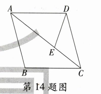 14. 如图,在菱形ABCD中,E为对角线AC上一点,且AE=AD,连接DE。若AB=10,AC=16,则DE的长为________。