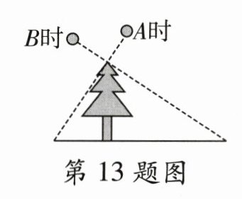 13.如图,在同一天测量某棵树在太阳光照射下的影长,A时测其影长为8米,B时测其影长为18米。若两次日照的光线互相垂直,则树的高度为________米。