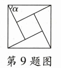 9.中国古代数学家赵爽在为《周髀算经》作注解时,用4个全等的直角三角形拼成一个正方形(如图),并用它证明了勾股定理,这个图被称为“弦图”。若“弦图”中小正方形的面积与每个直角三角形的面积均为4,∠α为直角三角形中的一个锐角,则∠α的正弦值为 ( )