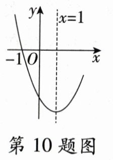10.如图,二次函数y=ax²+bx+c(a≠0)图象的一部分与x轴的一个交点坐标为(−1,0),对称轴为直线x=1,结合图象给出下列结论: