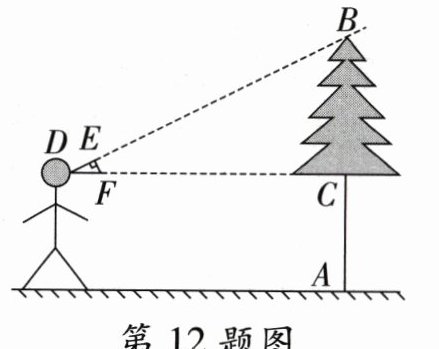 12.如图,小明同学用自制的直角三角形纸板DEF测量树的高度AB,他调整自己的位置,使斜边DF 与地面保持平行,并且边DE与点B在同一条直线上。已知纸板的两条直角边DE=40cm,EF=