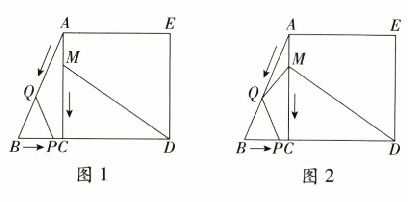 由题意,得BP = t cm,AQ = 2t cm,AM = t cm。