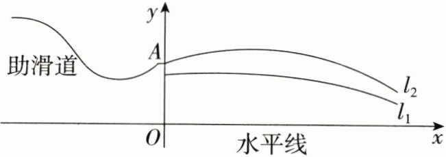 (2)若运动员在高出水平线10米的小山坡上着地,求此时运动员降落点到点A的水平距离;