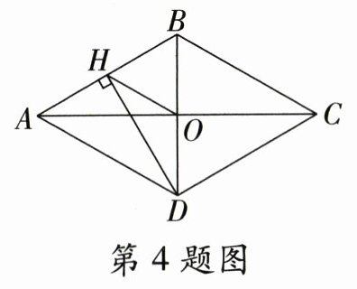 4.如图,菱形ABCD的对角线AC,BD相交于点O,过点D作DH⊥AB于点H,连接OH,OH=4。若菱形ABCD的面积为32$\sqrt{3}$,则CD的长为 ( )