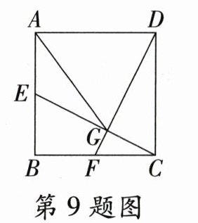 9.如图,在正方形ABCD中,E,F分别是AB,BC的中点,CE,DF交于点G,连接AG。下列结论:①CE =DF;②CE⊥DF;③AG=AD;④∠EAG=30°。其中正确的结论是 ( )