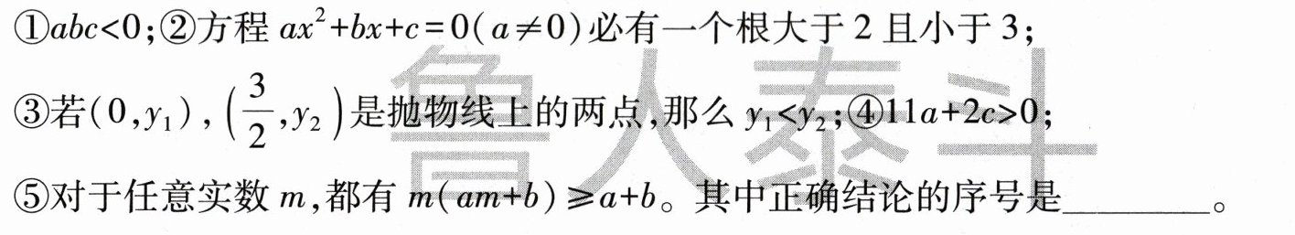 16.二次函数y=ax²+bx+c(a≠0)的图象如图所示,该二次函数的对称轴是直线x=1,给出下列结论: