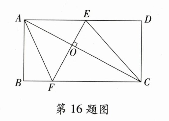 16. 如图,在矩形 ABCD 中,AB = 5,AD = 10,E 是边 AD 上的动点,过点 E 作 EF⊥AC,分别交对角线 AC,直线 BC 于点 O,F,在点 E 移动过程中,AF + FE + EC 的最小值为________。