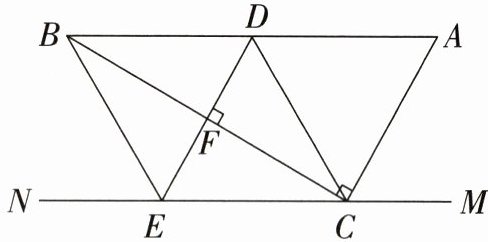 21. (10 分)如图,在 Rt△ABC 中,∠ACB = 90°,过点 C 作直线 MN//AB,D 为 AB 边上一点,过点 D 作 DE⊥BC,垂足为 F,交直线 MN 于 E,连接 CD,BE。
