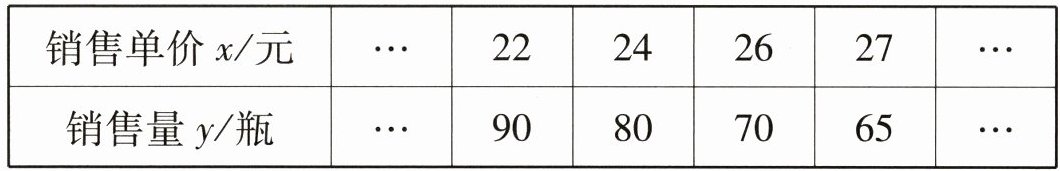 (1)知,若每瓶售价为$x$元,每天销售量为$y$瓶。