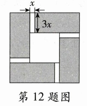 12. 如图,某景区准备在一块边长为20米的大正方形花园中间修建一个正方形的休闲场所。如图所示,要求修建四条等宽的矩形小道连接两个正方形的四边。若小道的长是宽的3倍,且花草种植区域(阴影部分)的面积为192平方米。设小道宽度为x米,根据题意,列出关于x的一元二次方程是______________。