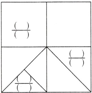 2. 在下面的括号里分别填上适当的分数,表示每个小图形占大正方形的几分之几。