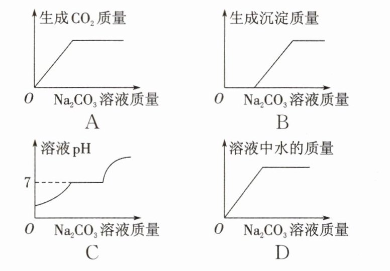8. (2024·榆林二模)向一定量稀盐酸和氯化钡的混合溶液中,逐滴滴入Na₂CO₃溶液至过量(氯化钡溶液呈中性)。下列图像不正确的是( )