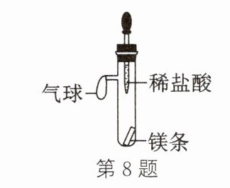 8. (2023·重庆江北期末)某实验小组进行如图所示实验,将稀盐酸滴到镁条上,观察实验现象。下列对结果分析不正确的是( )