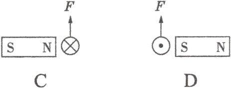 15.放在通电螺线管旁边的通电导线受力情况如图20−2−11所示(“”表示电流方向垂直纸面向外,“×”表示电流方向垂直纸面向里)。则下列选项中,通电导线受力情况正确的是( )