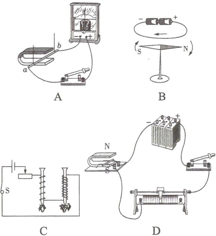 2.两根缝衣针A和B,当把A针用细线悬挂后,再用B针的尖端接近A针尖端时,发现A针尖端向B针尖端靠拢,这个现象说明( )