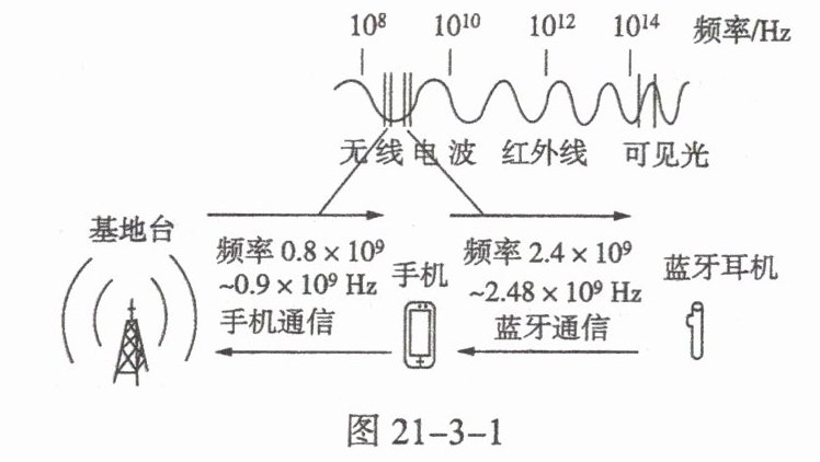 9.使用蓝牙耳机接听手机来电,信号传输示意图如图21−3−1所示。蓝牙通信的电磁波( )