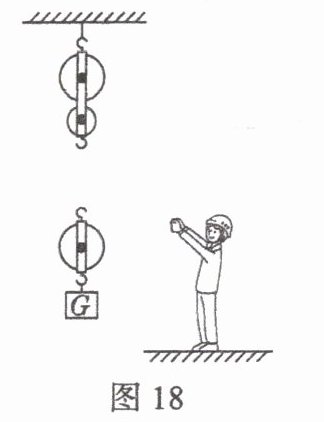 18. 如图18所示,小亮用滑轮组将装修材料运到楼上,请用笔画线帮他组装最省力的滑轮组。