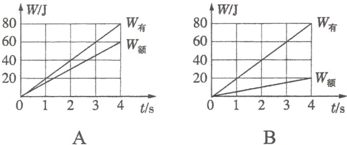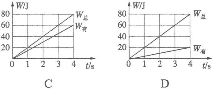 15. 如图 15 所示,使用动滑轮时拉力 F 在 4s 内做了 80J 的功,此动滑轮的机械效率为 75%。在同一个坐标轴里画出总功、有用功和额外功的图像,下列图像正确的是( )
