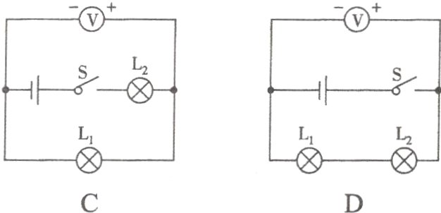 9.下列电路图中,能用电压表正确测出L1两端电压的是( )