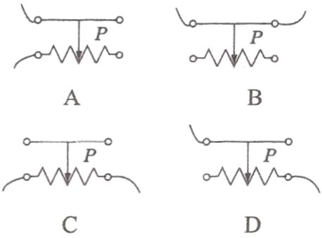 4. 下列选项为滑动变阻器的结构和连入电路的示意图。当滑片P向右滑动时,连入电路的电阻变大的是( )