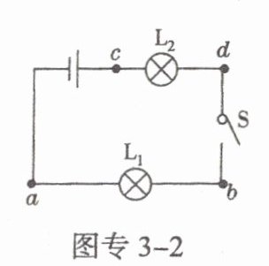 2. 如图专3−2所示的电路,闭合开关,两灯均发光。