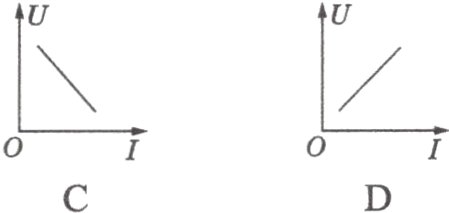 4. 图17−4−4所示的电路,电源电压不变,R₁为热敏电阻,其阻值随温度的升高而减小,闭合开关S,当监控区的温度升高时,电压表示数U与电流表示数I的关系图像是( )
