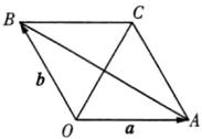 (2)$\sqrt{3}$ 解法一 如图,四边形$OACB$为平行四边形,设$\overrightarrow{OA}=\boldsymbol{a}$,$\overrightarrow{OB}=\boldsymbol{b}$,利用平行四边形法则得$\overrightarrow{OC}=\boldsymbol{a}+\boldsymbol{b}$,$\because|\boldsymbol{a}| = |\boldsymbol{b}| = |\boldsymbol{a}+\boldsymbol{b}| = 1$,$\therefore\triangle OAC$为正三角形,$\therefore|\overrightarrow{BA}| = |\boldsymbol{a}-\boldsymbol{b}| = 2\times\frac{\sqrt{3}}{2}\times|\boldsymbol{a}|=\sqrt{3}$。