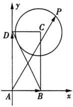 例6A解法一如图,过点C作CE//BD交直线AB于点E,因为$\overrightarrow{AP}=\lambda\overrightarrow{AB}+\mu\overrightarrow{AD}$,则由等和线定理可知,当等和线l与圆相切时,$\lambda+\mu$最大,设此时l与直线AB交于点F,则易知AB = BE = EF,此时$\lambda+\mu=\frac{AF}{AB}=\frac{AB + BE + EF}{AB}=\frac{3AB}{AB}=3$.