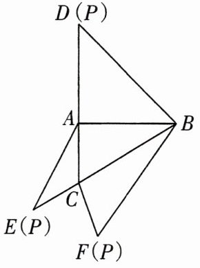 训练2 [全国卷Ⅰ]如图,在三棱锥P - ABC的平面展开图中,$AC = 1$,$AB = AD = \sqrt{3}$,$AB⊥AC$,$AB⊥AD$,$∠CAE = 30°$,则$\cos∠FCB = $________。