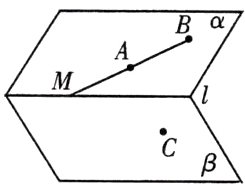 1. 如图,$\alpha\cap\beta =l,A,B\in\alpha,C\in\beta$,且$C\notin l$,直线$AB\cap l = M$,过A,B,C三点的平面记作$\gamma$,则$\gamma$与$\beta$的交线必通过 ( )