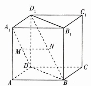 例3 [2021浙江高考]如图,已知正方体$ABCD - A_{1}B_{1}C_{1}D_{1}$,$M,N$分别是$A_{1}D,D_{1}B$的中点,则 ( )