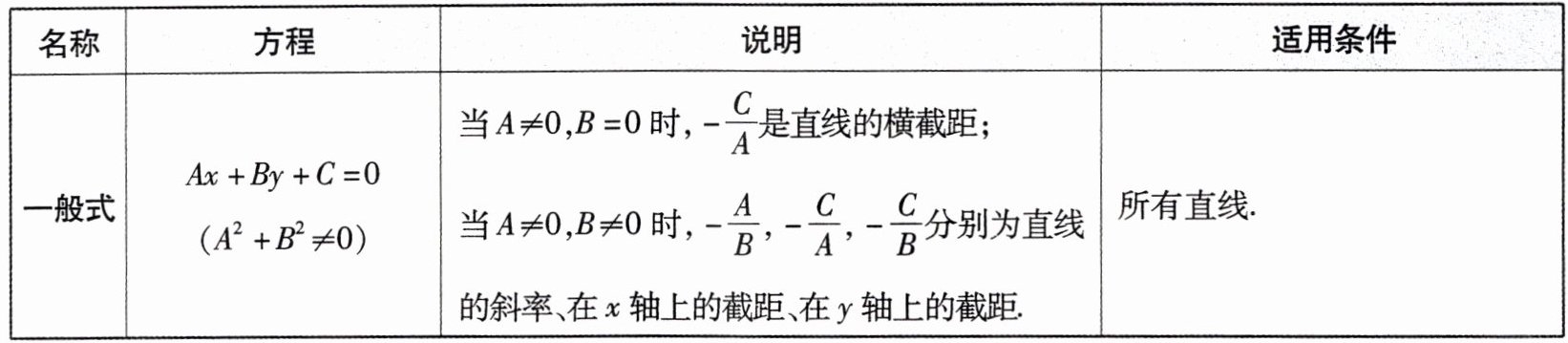 (2)截距是指直线与坐标轴交点的坐标值,可正,可负,可零。