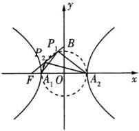 (2)A不妨设点$F$为双曲线的左焦点,点$B$在$y$轴正半轴上,则$F(-c,0)$,$B(0,b)$,直线$BF$的方程为$bx - cy=-bc$。如图所示,以$O$为圆心,$A_{1}A_{2}$为直径作圆$O$,则$P_{1}$,$P_{2}$在圆$O$上。