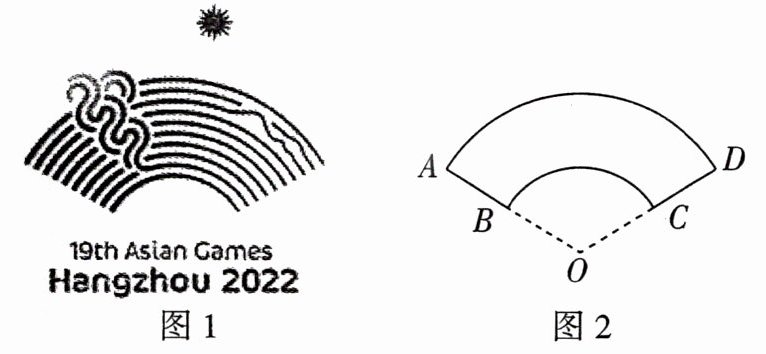 例2 [2023天津南开中学统练]如图1是杭州第19届亚运会会徽,名为“潮涌”,钱塘江和钱江潮头是会徽的形象核心,绿水青山展示了浙江杭州山水城市的自然特征,江潮奔涌表达了浙江儿女勇立潮头的精神气质,整个会徽形象象征着新时代中国特色社会主义大潮的涌动和发展. 如图2是会徽的几何图形,设弧$AD$长度是$l_1$,弧$BC$长度是$l_2$,几何图形$ABCD$面积为$S_1$,扇形$BOC$面积为$S_2$,若$\frac{l_1}{l_2} = 2$,则$\frac{S_1}{S_2} =$ ( )