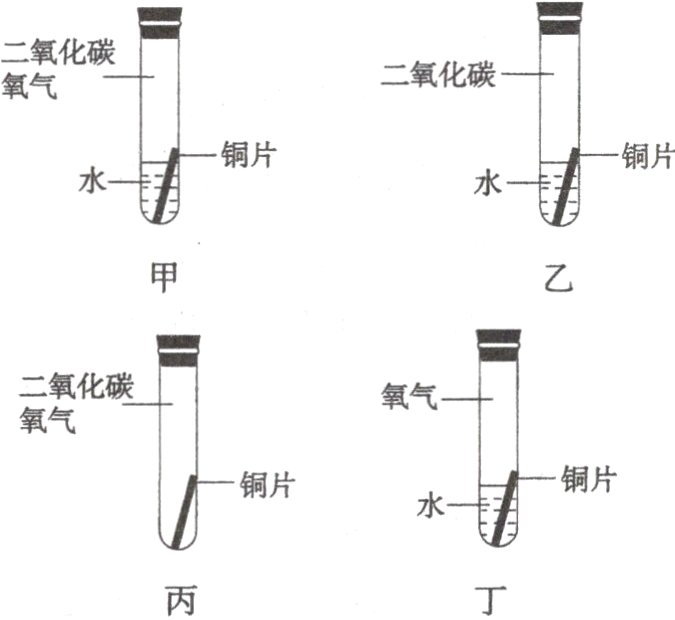 9.某同学根据铜绿的成分Cu₂(OH)₂CO₃作出猜想:金属铜锈蚀的条件除有氧气和水外,还必须有二氧化碳。为证明“必须有二氧化碳”,需要进行如图所示实验中的( )