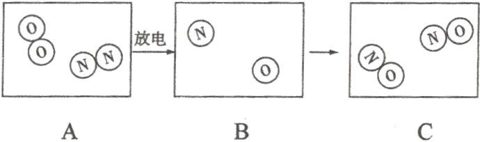 (3)在放电条件下氮分子分解成氮原子,氧分子分解成氧原子。