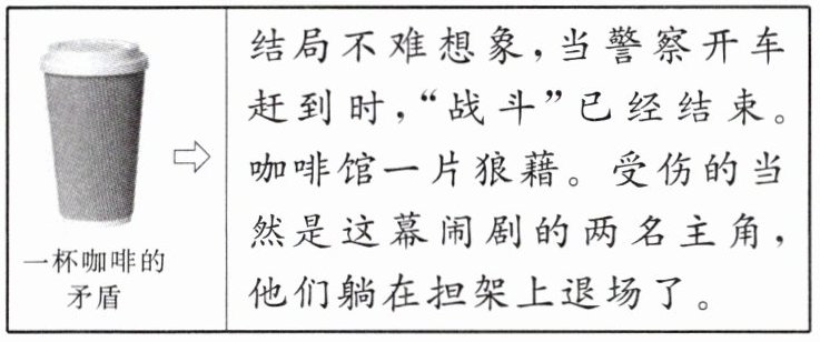15. 示例:文章以咖啡机在闹剧后成功运作作为结尾,以平静的场景收束,讽刺了刚才的这场风波。 顾客没有等待的耐心;店员没有服务的意识;围观群众的煽风点火,均是这场闹剧的导火索。 这场矛盾看似关乎咖啡,实则关乎社会现实。 人们在快节奏生活下逐渐变得急躁、冷漠,缺少了对彼此之间应有的尊重,暴露出人类冷漠自私的本性。 因而,保持耐心、心怀对生活的热情是必不可少的,只有这样,才能使社会更加和谐美好