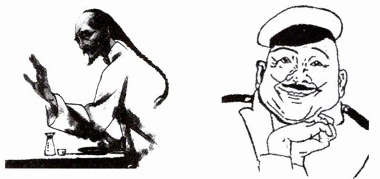 示例二:奥楚蔑洛夫,一个沙皇政权下的警官,兴师动众处理街头小事,变化无常。我从中读出了沙皇政府的黑暗统治。