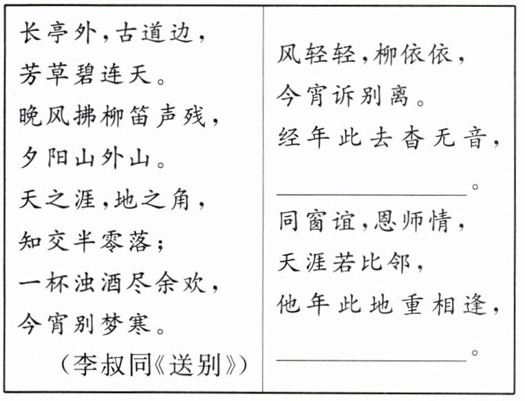 4.[活动四]下面是同学改写的《送别》。根据活动内容补全诗歌。