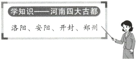 (2)中国历史文化名城——洛阳,洛阳有五大都城遗址,被誉为九朝古都,历史遗迹众多,有人称“行走洛阳,读懂中国”;中国八大古都之一安阳,安阳是司母戊鼎的出土地,也是甲骨文的发现地,历史文化资源丰富。(任答一点,符合题意的其他答案也可,2分)