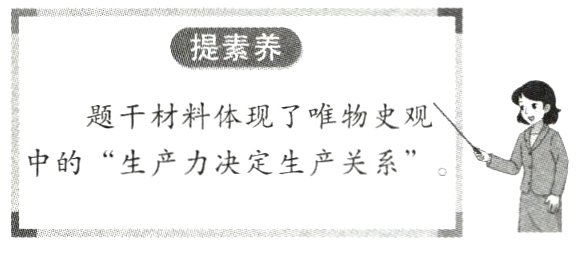 C [解析]根据材料可知,生产力的发展促进了新的生产和经营方式的出现。这表明经济的发展改变了中世纪欧洲的社会面貌,即生产力的发展引发生产关系的改变。故选C。